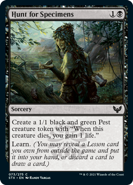 - Her affinity for Pests and specimens: Hunt for Specimens, Festering Newt (her “salamander-like pest”), and the Pests created by many Witherbloom-themed cards.