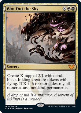 - Inklings (evasive flyers) via Shadrix Silverquill, Blot Out the Sky, Inkling Summoning (as a Lesson), and Felisa.
