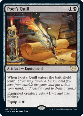 - His personal tool: Poet’s Quill, granting lifelink and Learn.
