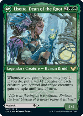 - Lisette, Dean of the Root: Turns life gain into team-wide +1/+1 counters and trample.